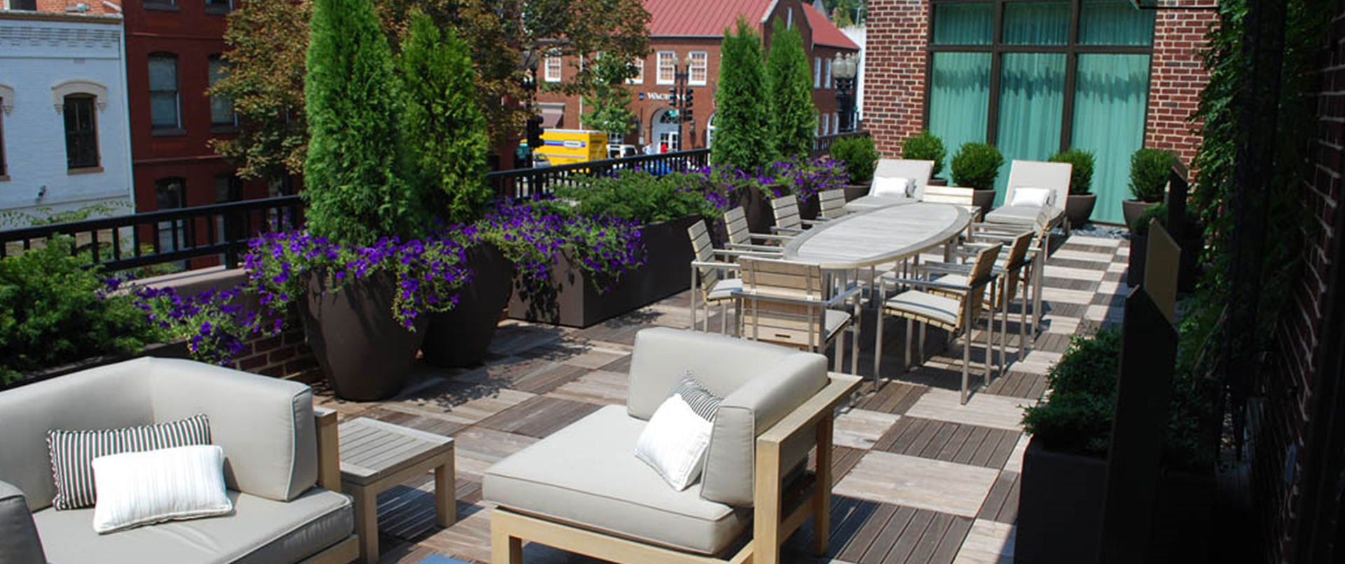 Diseñada pensando en los VIP, la espaciosa terraza de 1000 pies cuadrados con una plataforma de madera de Ipe Bison permite una vista panorámica de los alrededores de Georgetown y se puede dividir en secciones para eventos privados o por seguridad. La azotea estilo centro turístico, sostenida con pedestales Bison Versadjust, complementa los altos estándares del hotel para la comodidad y el lujo de sus huéspedes.