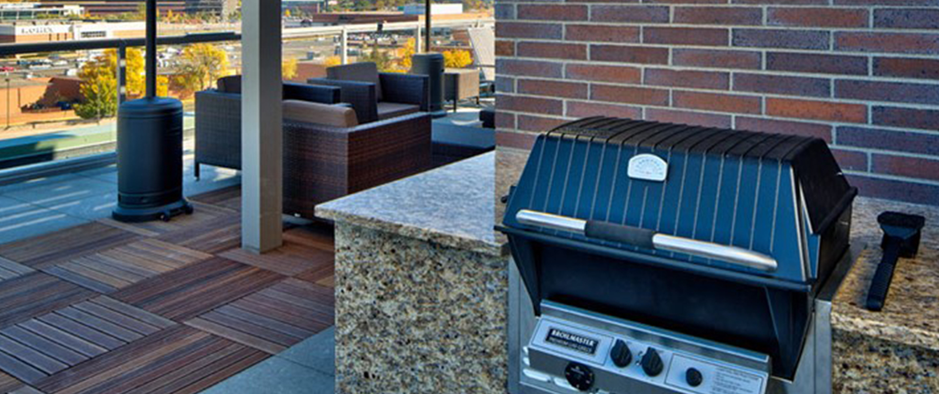 Diseñado por Elness Swenson Graham Architects, la plataforma de la terraza está construida con baldosas de madera de massaranduba Bison FSC® de 2x2 con el apoyo de pedestales Versadjust. La terraza ofrece a los habitantes del complejo áreas para cocinar y conversar al aire libre, así como vistas panorámicas de la ciudad.