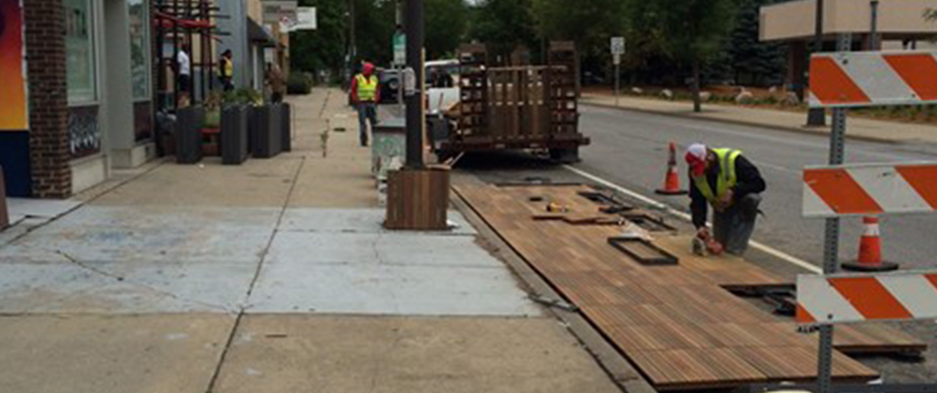 Los pedestales y las baldosas de madera facilitan el desmantelamiento de los parques temporales en el invierno y el almacenamiento para su uso futuro en los meses de verano. Las empresas cercanas perderán algunos espacios de estacionamiento, pero se beneficiarán de un área de descanso gratuita, algo positivo para los restaurantes y cafeterías, ¡mientras se crea un vecindario más amigable para los peatones y centrado en la comunidad!