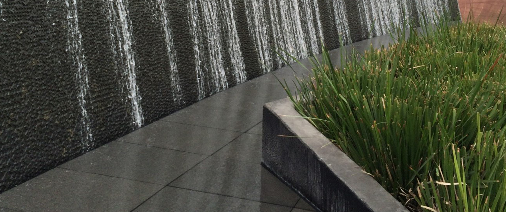 La “pared de agua” de la fuente tiene un flujo constante de agua que corre sobre su superficie y se desborda de forma periódica, lo que crea un efecto de cortina que cae. Los duraderos pedestales Versadjust son impermeables a la congelación y descongelación, al agua, al moho y a los productos químicos libres de solventes, lo que garantiza que la fuente no requerirá mantenimiento y conservará el estatus lujoso del hotel.